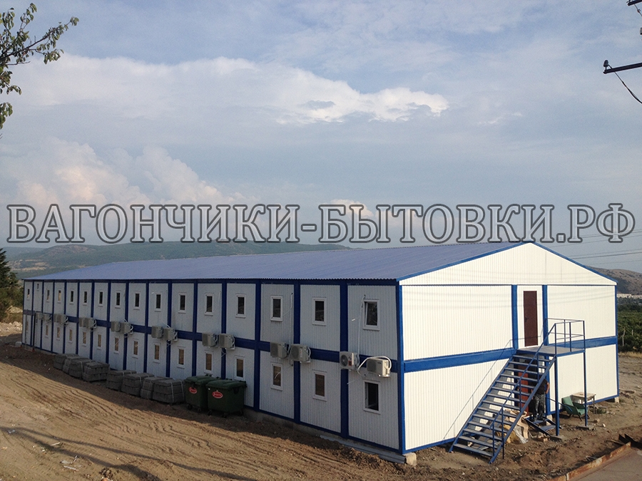 Модульное здание состоит из 64 единиц блок - контейнеров БК 6,0*2,4*2,5м.